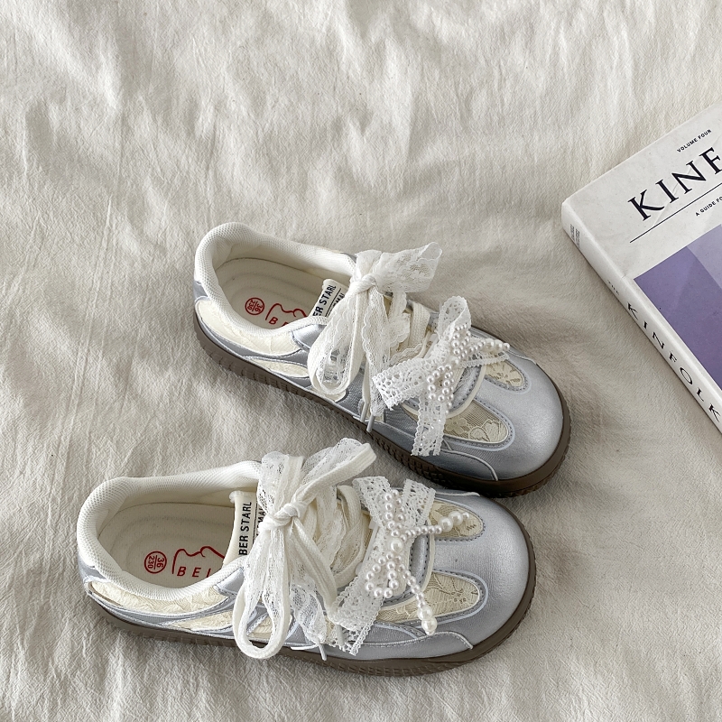 Women Silver Pearl Ballet Training Shoes pring Thick Soled White Lace Sneakers Dance, Casual Wear High-quality product featuring pretty outfits, casual outfits, work outfits women and more. Modern design that fits the latest trends. Premium materials ensure durability and comfort. Order now for special offers! Product designed with attention to every detail. Suitable for all occasions and personal styles.