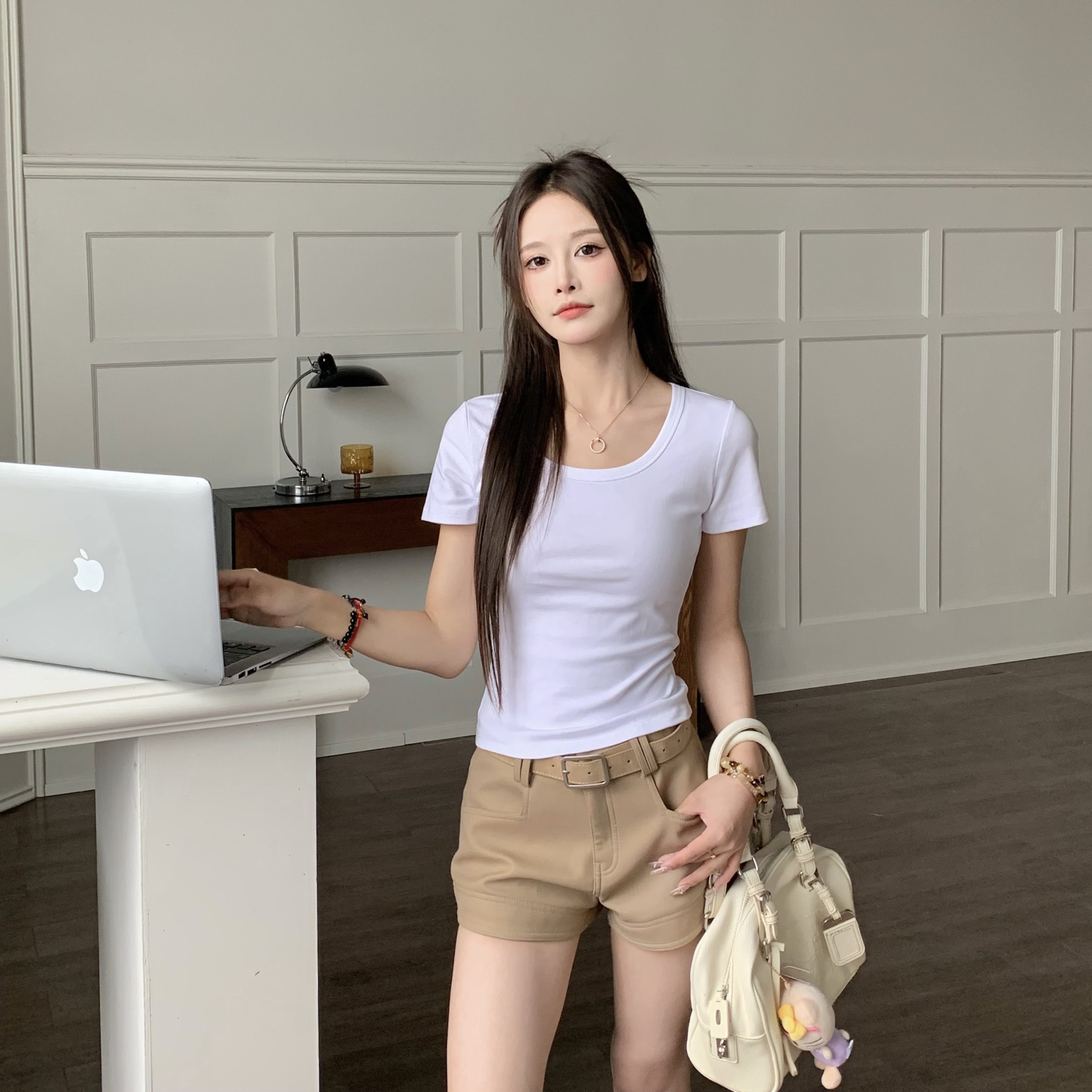 Women Slim Fit U Neck Short Sleeve White Top Spring, Casual High-quality product featuring spring outfits, casual outfits winter, casual outfits and more. Modern design that fits the latest trends. Premium materials ensure durability and comfort. Order now for special offers! Product designed with attention to every detail. Suitable for all occasions and personal styles.