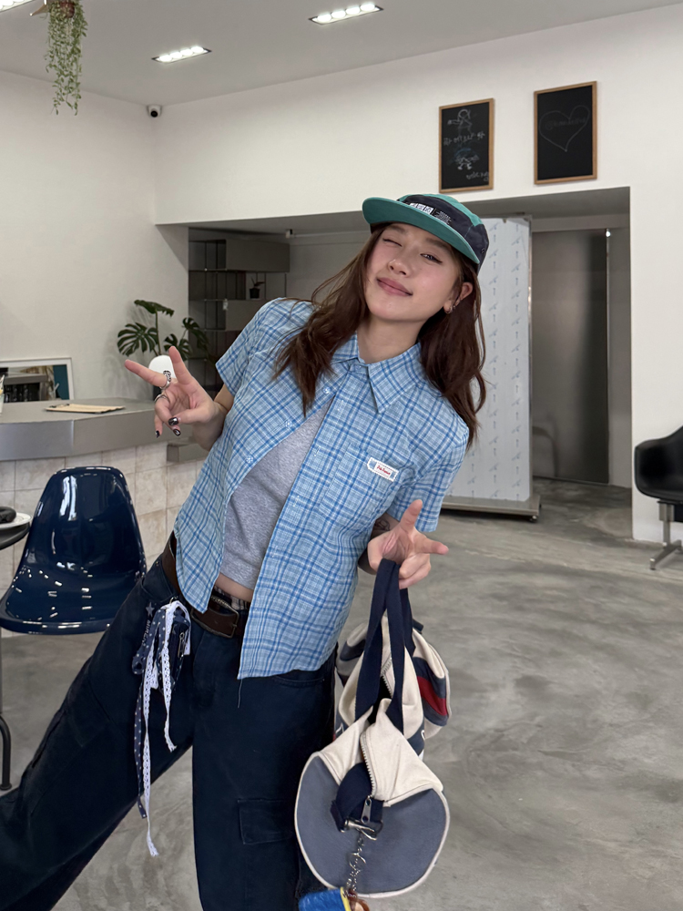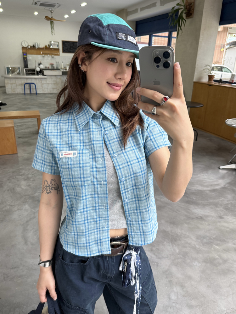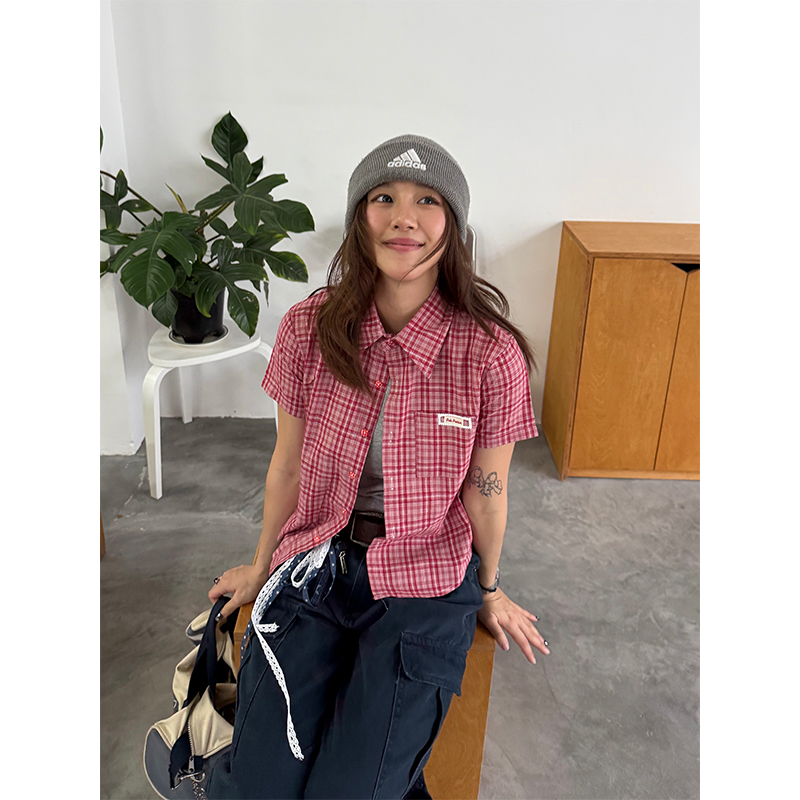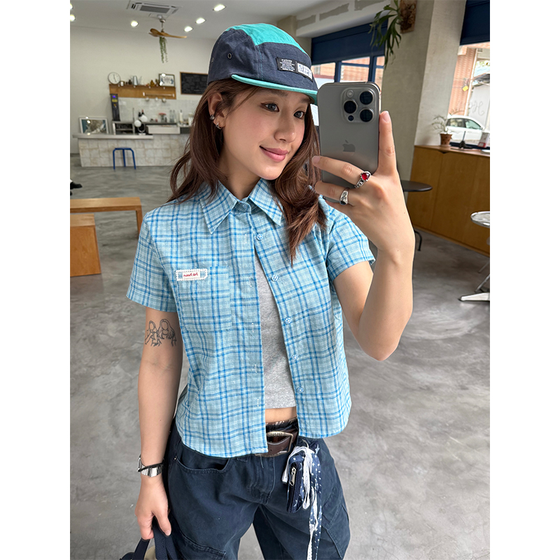Women Summer Casual Plaid Short Sleeve Slim Shirt Regular Fit – Summer Fits