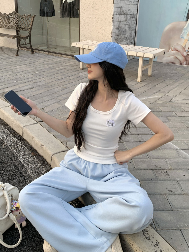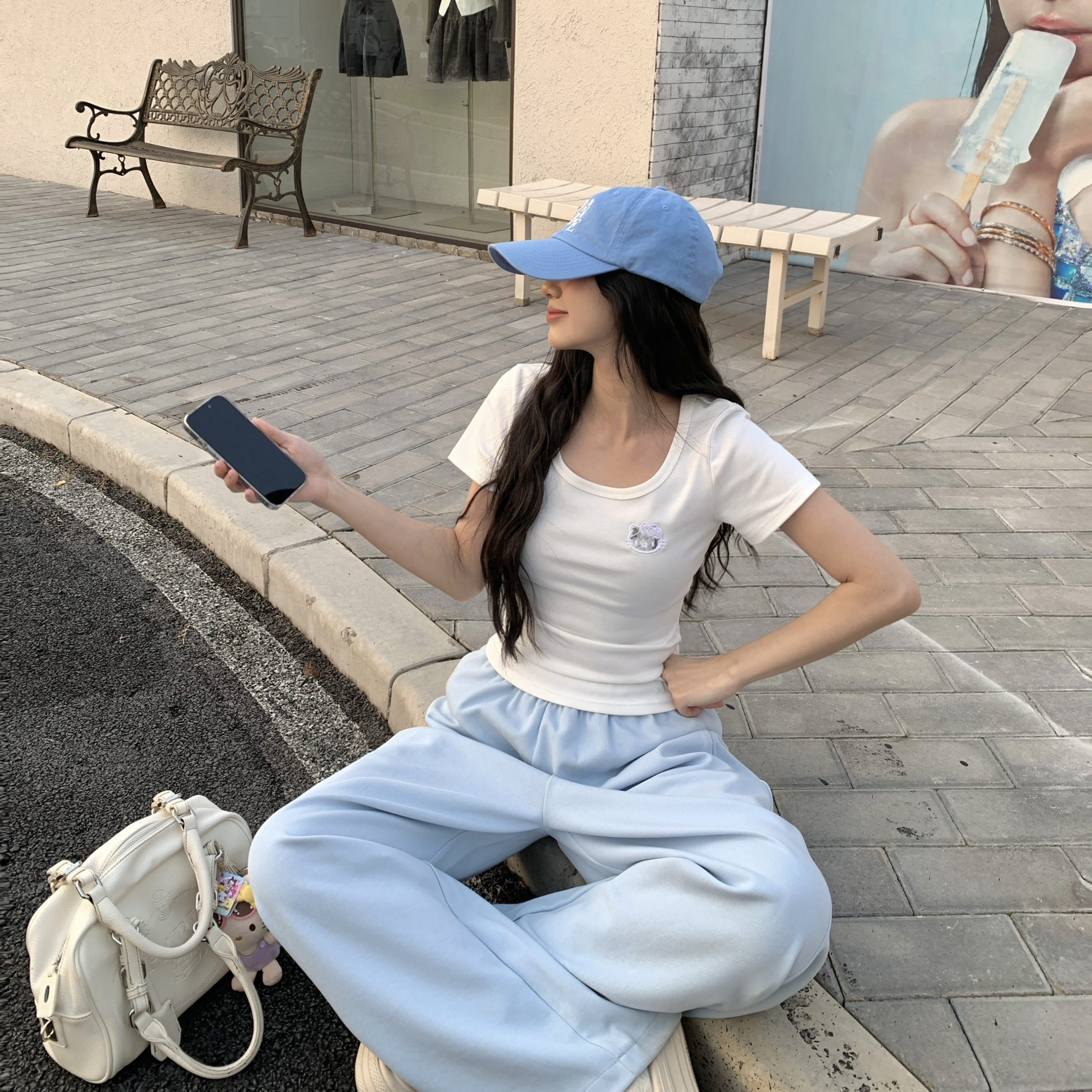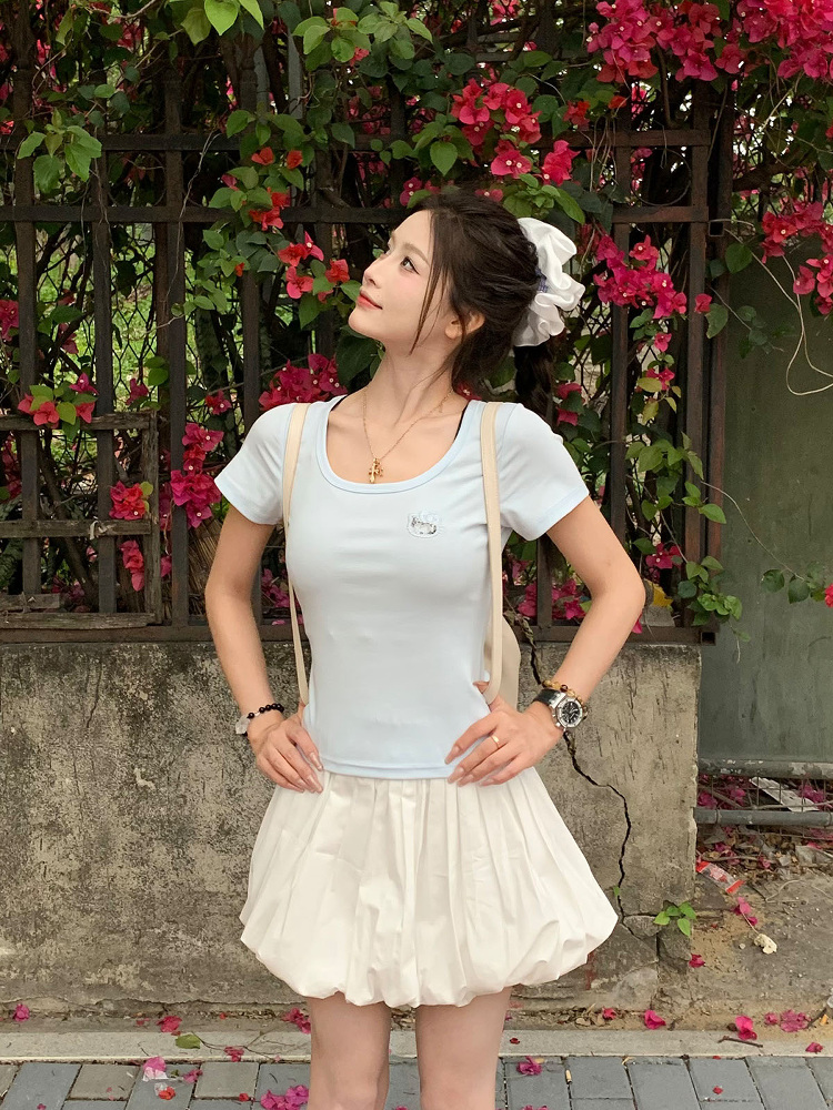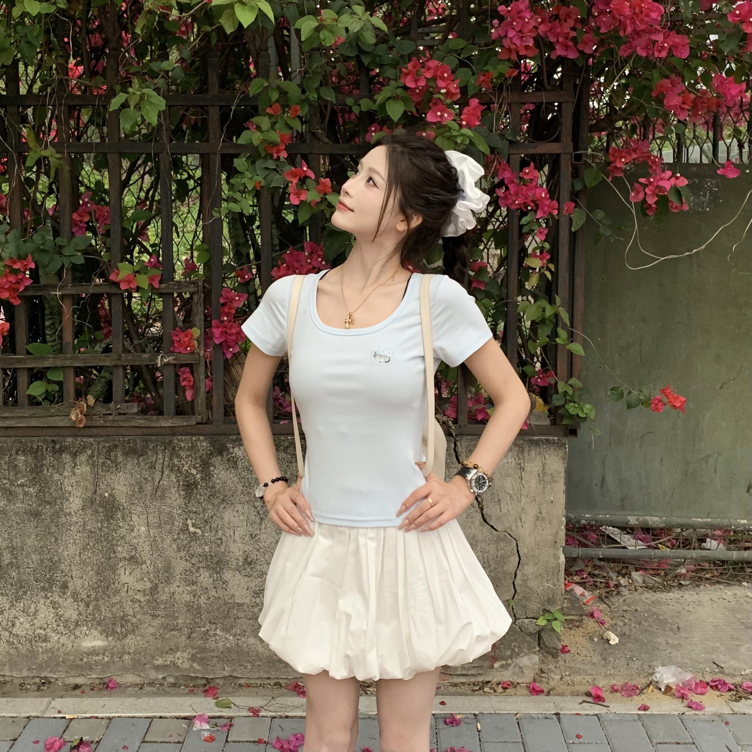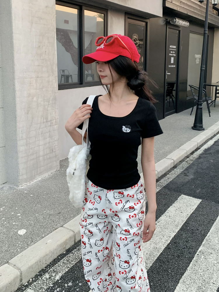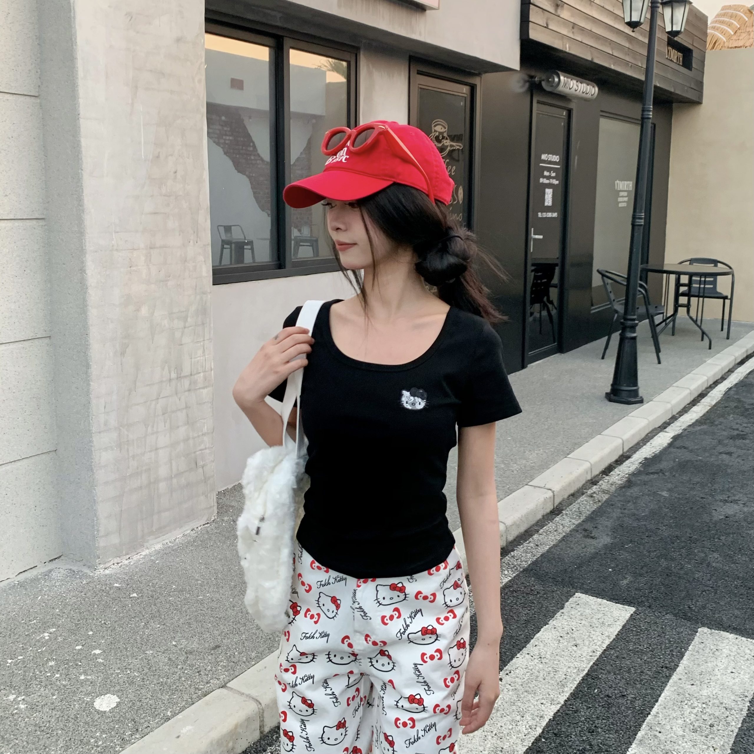Women Summer U Neck Kitty Cat Embroidered Short Sleeve Sweet, Cute Vibe – Summer Fits