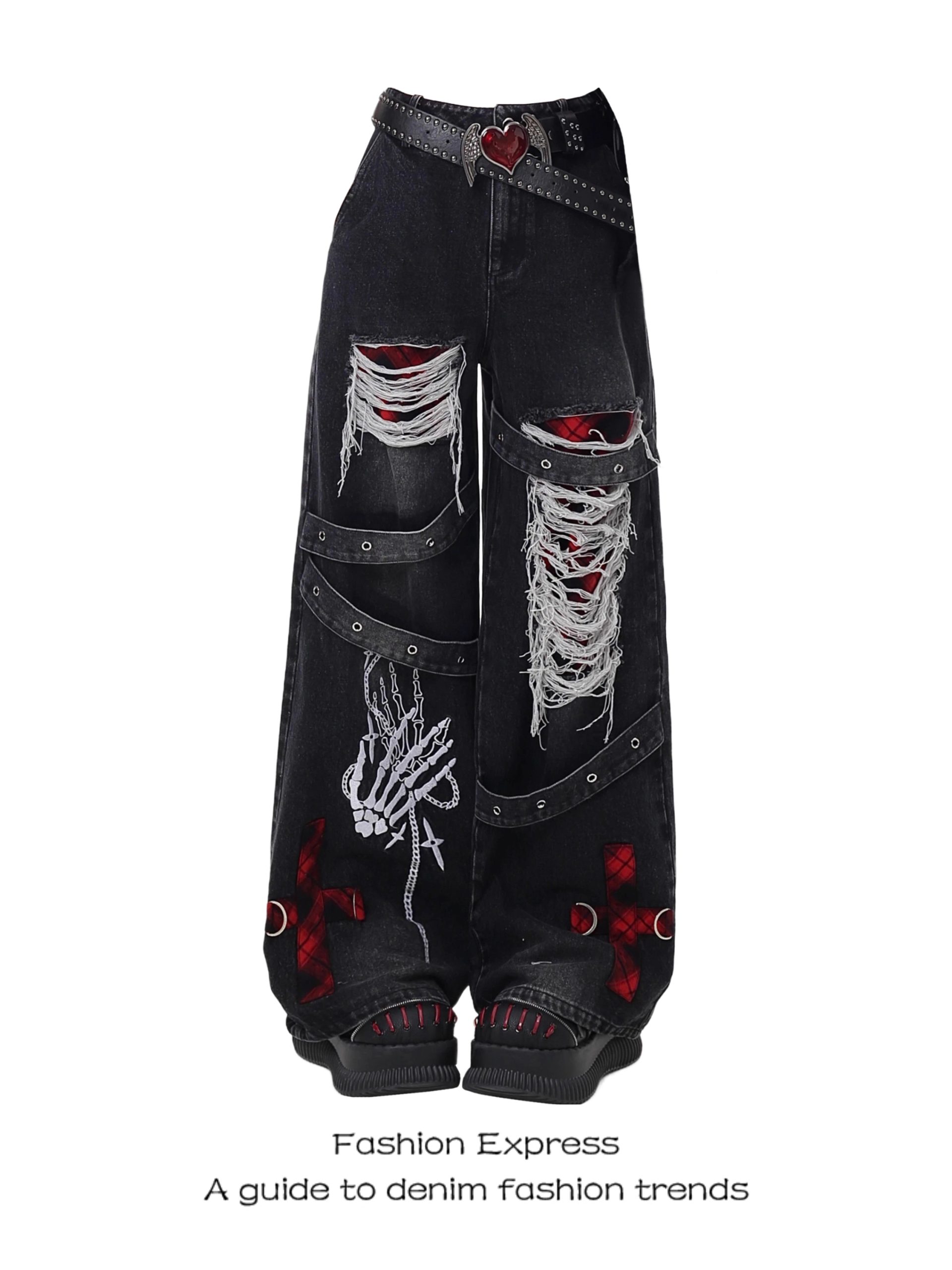 Women Wide Leg Ripped Jeans, Punk Retro Denim, pring Autumn High-quality product featuring fall fashion, fall fits, outfit inspo fall and more. Modern design that fits the latest trends. Premium materials ensure durability and comfort. Order now for special offers! Product designed with attention to every detail. Suitable for all occasions and personal styles.