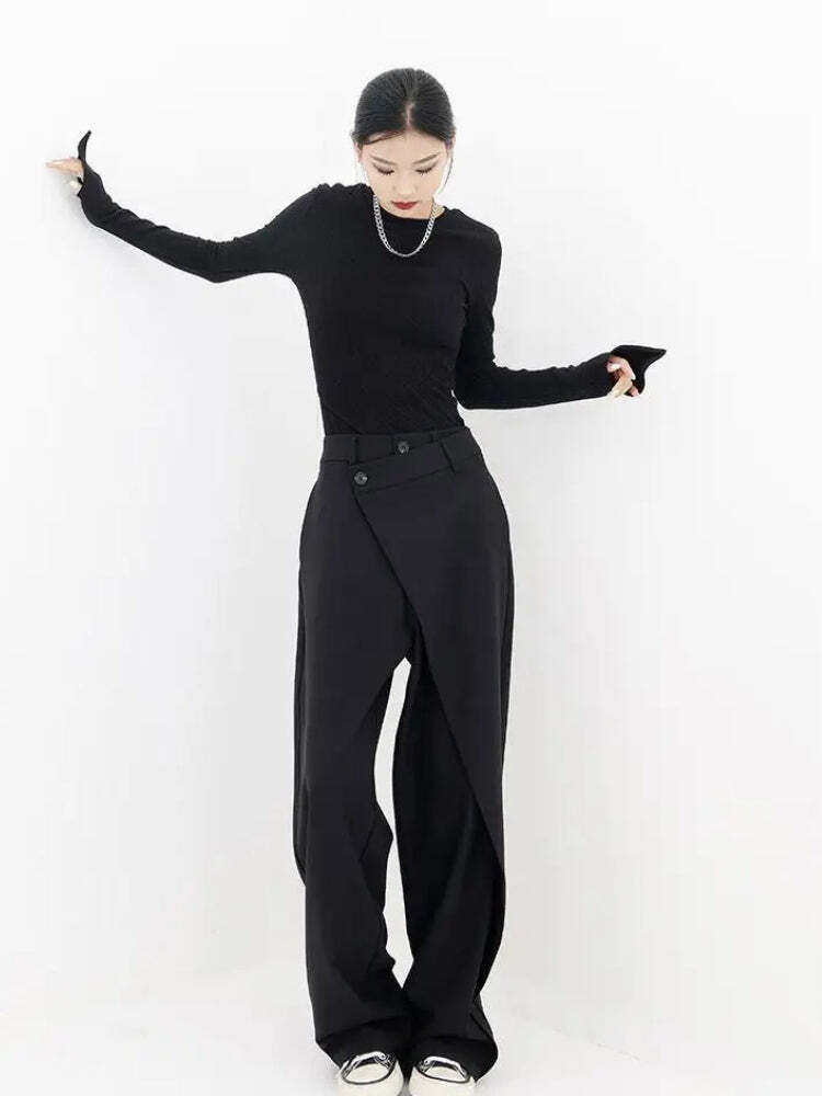 These wrap front wide-leg pants deliver a modern, edgy silhouette. The overlapped panel adds a fresh style for day or night, and the loose fit keeps it comfy.