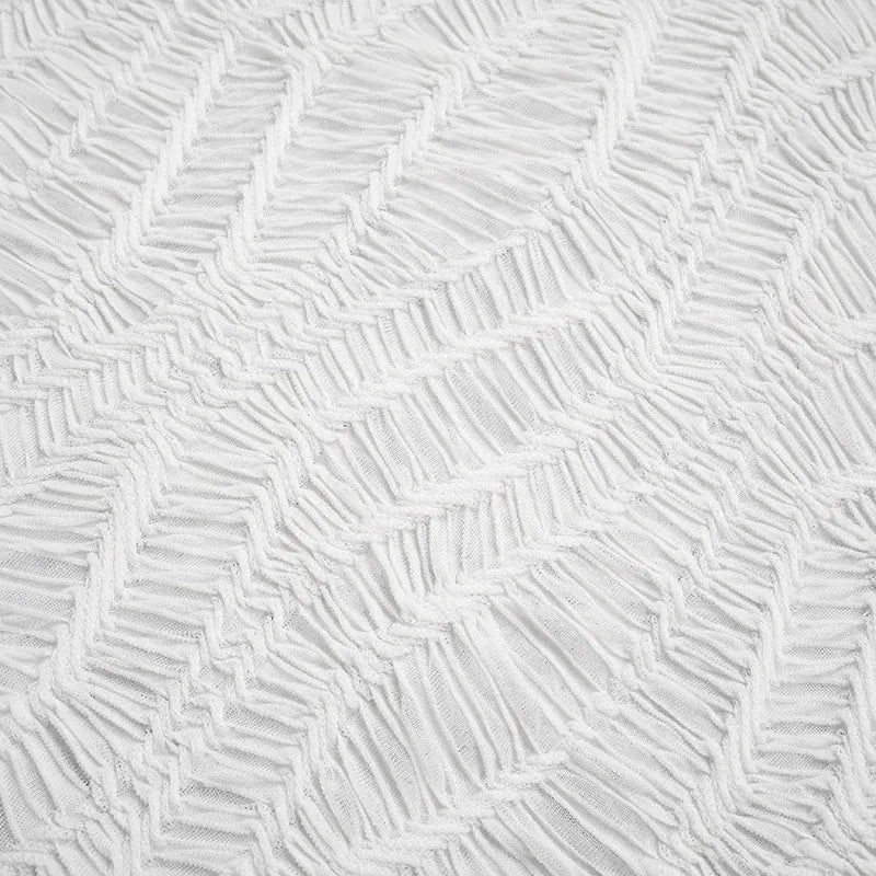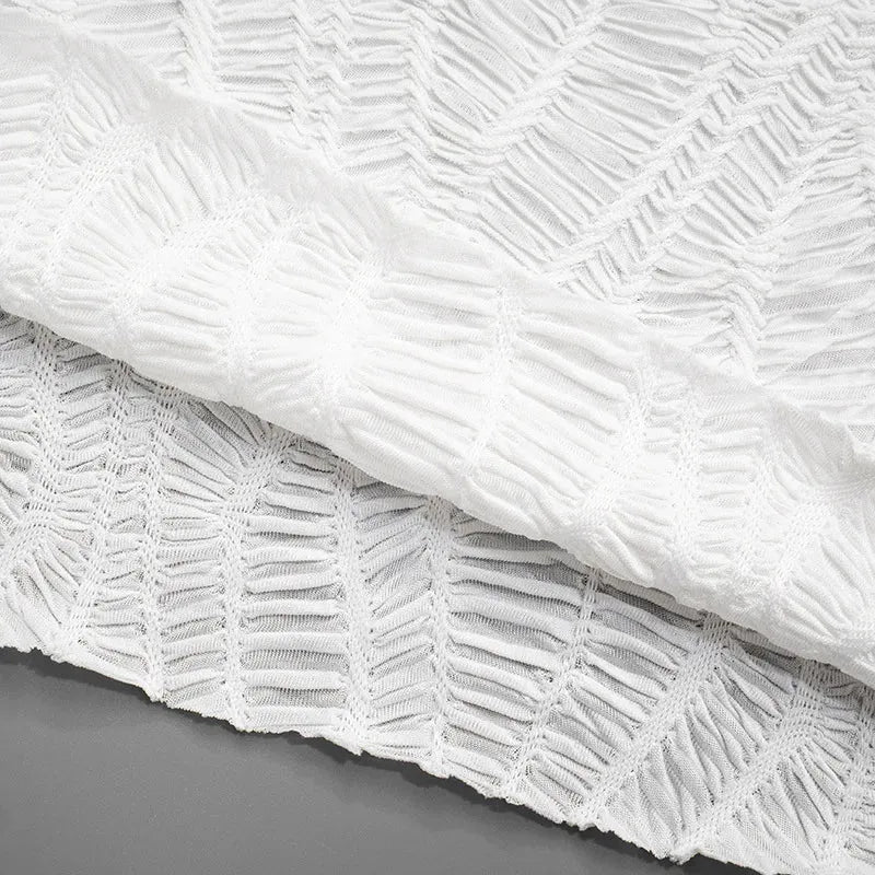 Texture meets tension in this wrinkled lace-up mini dress. The body-hugging fit and high neckline create clean drama, while the long ribbon tie adds that cool-girl energy. It’s the perfect statement piece for your next night out or date night look.