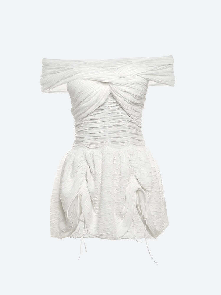 Wrinkled Off Shoulder Mini Dress – Thanksgiving Dress