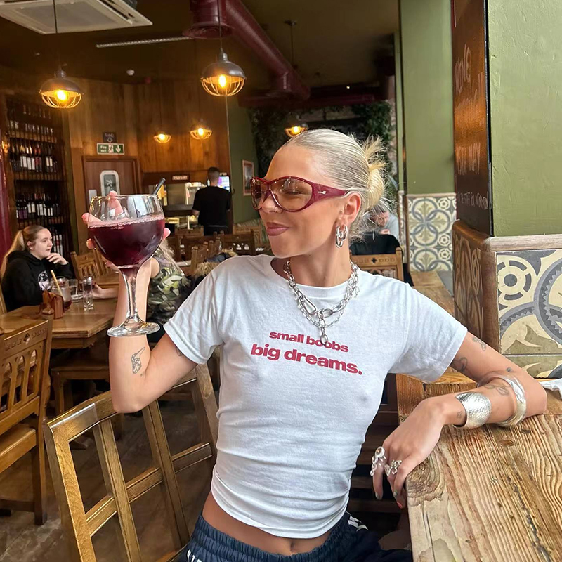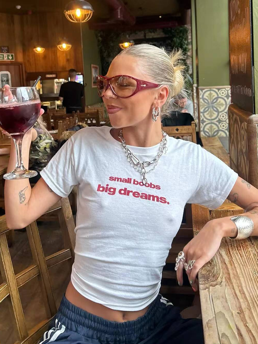 Elevate your wardrobe with our Y2K American Retro Letter Print Short Crop T-Shirt, designed for the modern woman who loves to blend sweet and spicy styles. This off-shoulder, slim fit top showcases playful graphics while providing a flattering silhouette that pairs perfectly with your favorite high-waisted jeans or skirts. Made for comfort and style, this versatile tee is a must-have for any fashion-forward closet. Add to your cart and embrace the retro vibe today!
