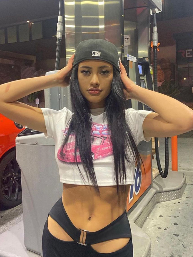 Elevate your wardrobe with our Y2K American Retro Shoulder Short Sleeve Crop Top, designed for the modern woman who embraces sweet and spicy millennial style. This trendy t-shirt features a flattering fit that accentuates your silhouette, while its eye-catching design makes it perfect for both casual outings and chic gatherings. Made from soft, breathable fabric, it ensures all-day comfort and effortless style. Don’t miss out on this must-have addition to your collection add it to your cart today!