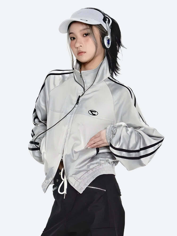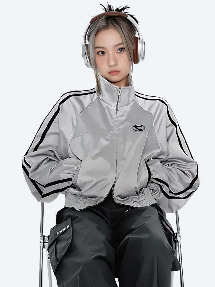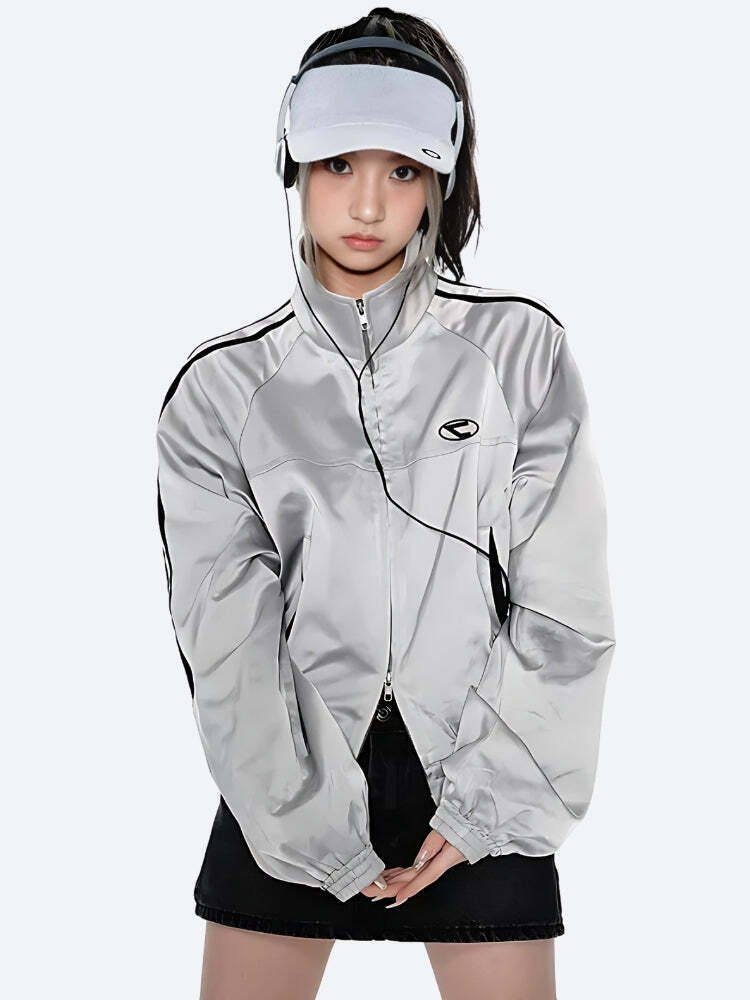 Stylish Y2k Cyberpunk Reflective Double Zip-up Jacket for Trendy Y2k Outfits