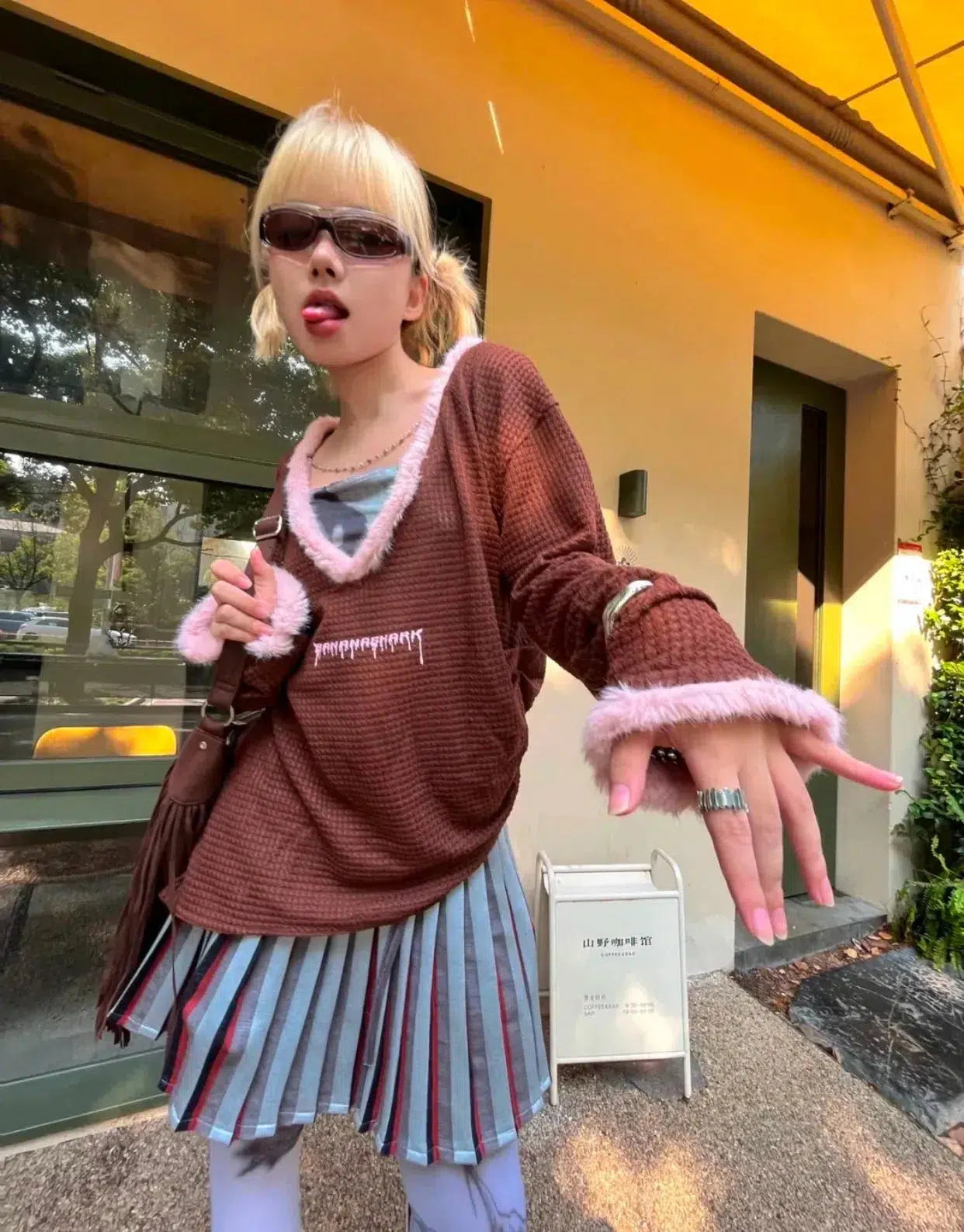 Stylish Y2k Deep Neck Sweater for Trendy Y2k Outfits This Season