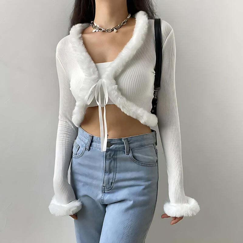 Y2k Faux Fur Corduroy Crop Cardigan – Y2k Outfits