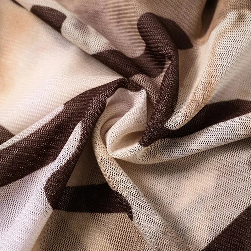 It’s all about making a statement with its eye-catching fishnet sleeves and a transparent mesh body that showcases a retro graphic. This top blends iconic late 90s and early 2000s vibes with contemporary fashion trends, making it perfect for those who love to stand out. Pair it with a mini skirt for a full throwback look that captures the rebellious spirit of the era.