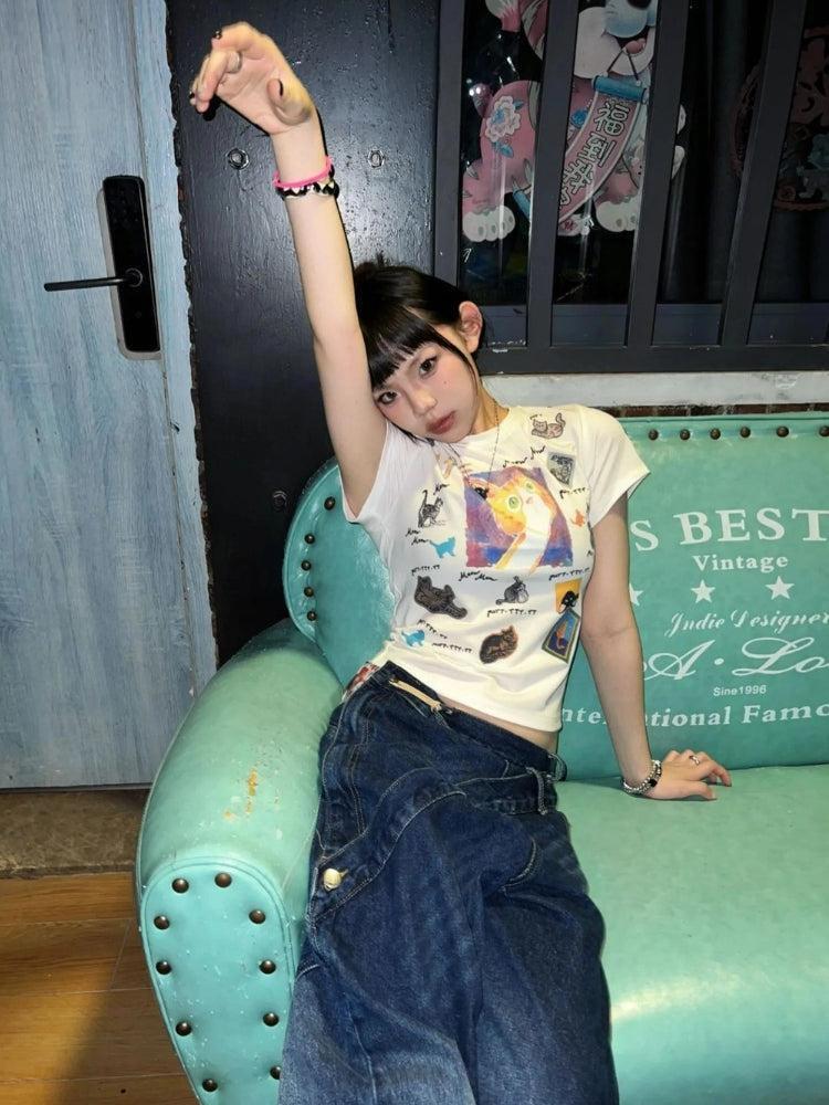 Y2K Graphic Cat Tee