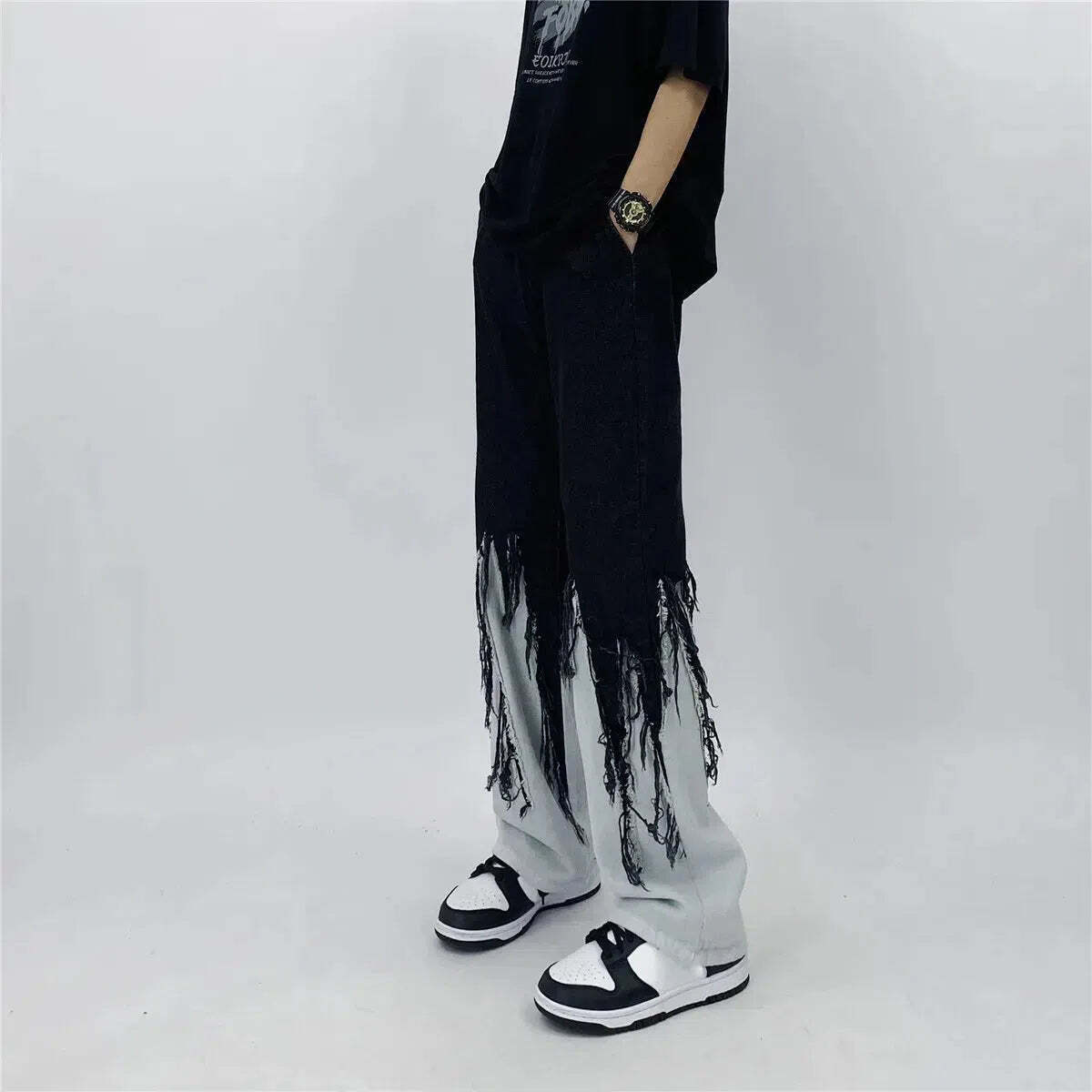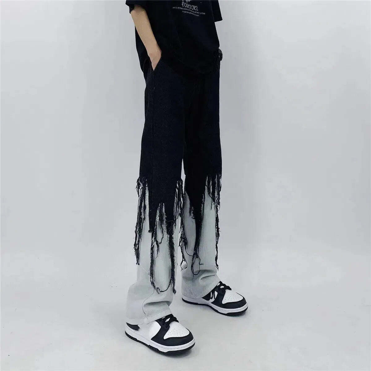 Y2k Outfits: Grunge Fringed Straight Leg Jeans for a Vintage Look