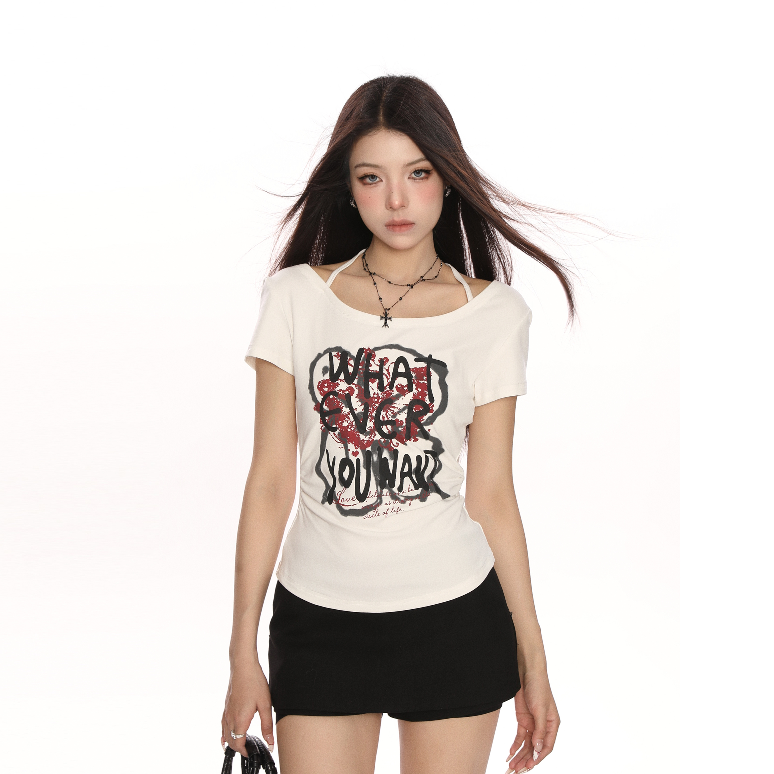 Embrace the bold and playful spirit of the Y2K era with our Hot Girl Graffiti One-Shoulder Short Sleeve T-Shirt. This trendy slim-fit summer top features eye-catching graffiti designs that make a statement while providing a flattering silhouette for all body types. Perfect for pairing with your favorite jeans or skirts, this unique piece is a must-have for your wardrobe. Don’t miss out on the chance to elevate your summer style Add to your cart today!