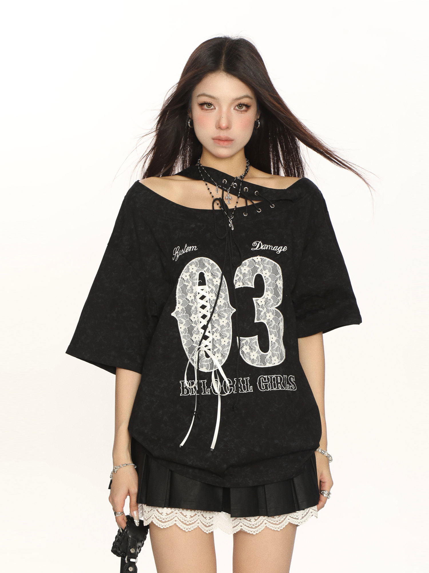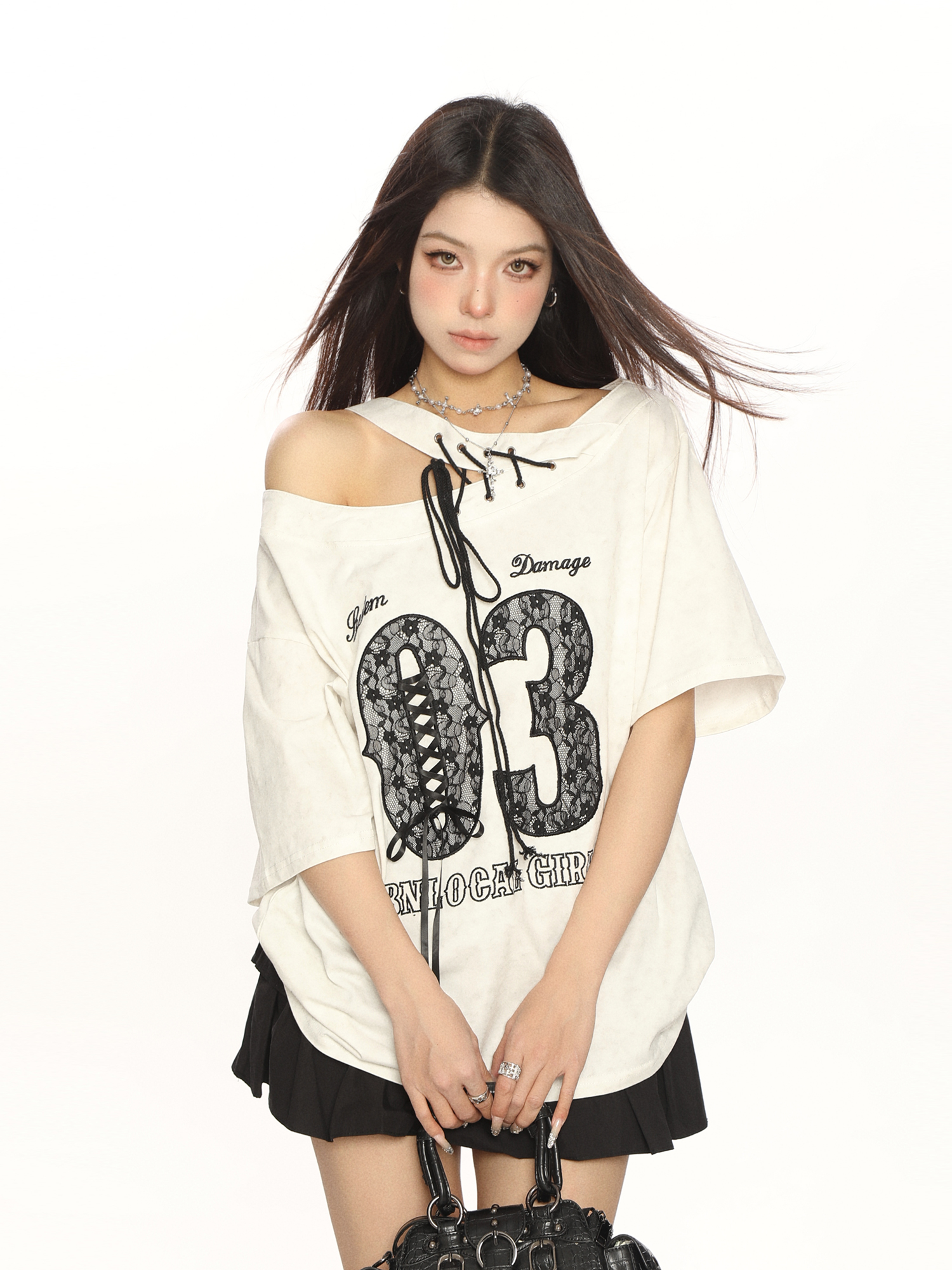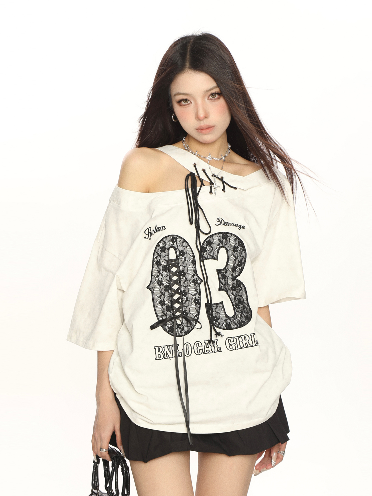 Elevate your summer wardrobe with our Y2K Lace Tie Asymmetrical Shoulder Short Sleeve T-Shirt for Women. This trendy off-shoulder top features a slimming fit and delicate lace tie details, making it the perfect choice for any fashion-forward woman looking to make a statement. The unique asymmetrical design adds a touch of flair, ensuring you stand out in any crowd. Pair it with your favorite jeans or a cute skirt for a chic look that transitions effortlessly from day to night. Don’t miss out on this must-have piece add it to your cart today!