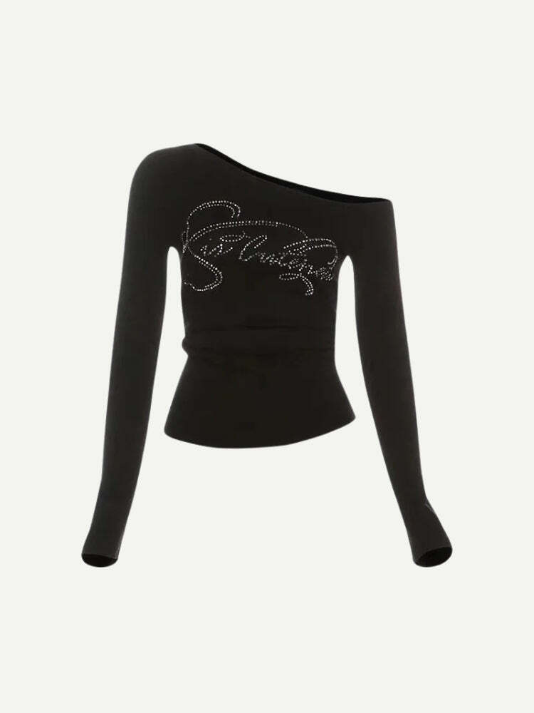 Y2K Rhinestone One Shoulder Top High-quality product featuring 90s fashion, 2000s fashion, outfit inspo and more. Modern design that fits the latest trends. Premium materials ensure durability and comfort. Order now for special offers! Product designed with attention to every detail. Suitable for all occasions and personal styles.