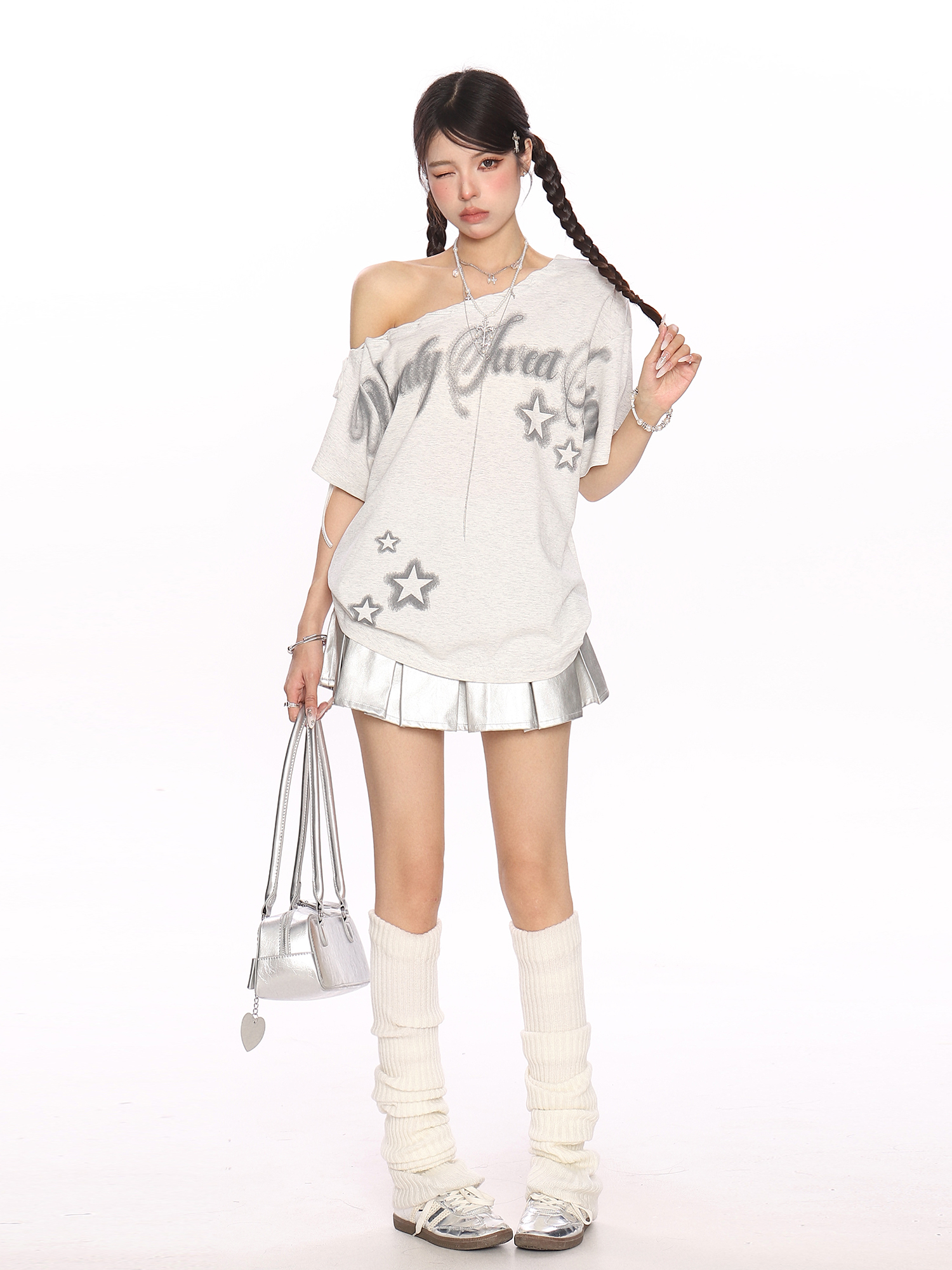 Y2K Star Graffiti Off Shoulder Short Sleeve Women Slim Fit Strap Shoulder Summer Top Cool High-quality product featuring summer fits, cool sunglasses, outfit inspo fall and more. Modern design that fits the latest trends. Premium materials ensure durability and comfort. Order now for special offers! Product designed with attention to every detail. Suitable for all occasions and personal styles.