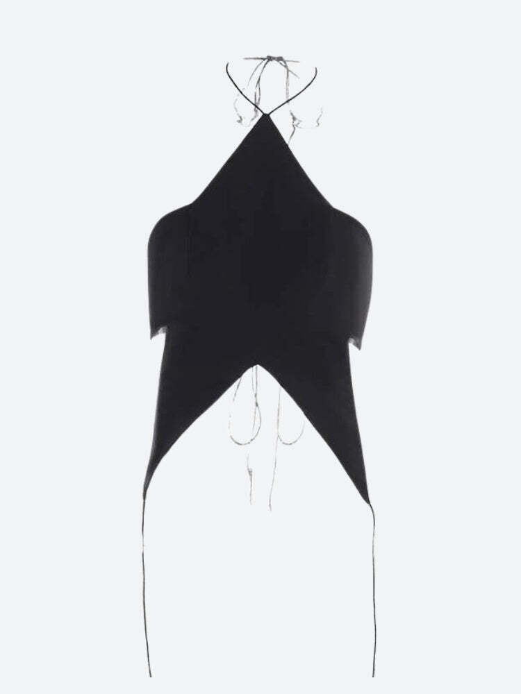 Sleek and daring, this Y2K-inspired top features a lace-up back and a dramatic backless design. Its with a playful, starry lace-up detail, making it a captivating choice for those who cherish unique, statement pieces. Tailored for an edgy, modern look, it pairs beautifully with high-waisted trousers or skirts, offering a glimpse of retro flair with a contemporary twist.