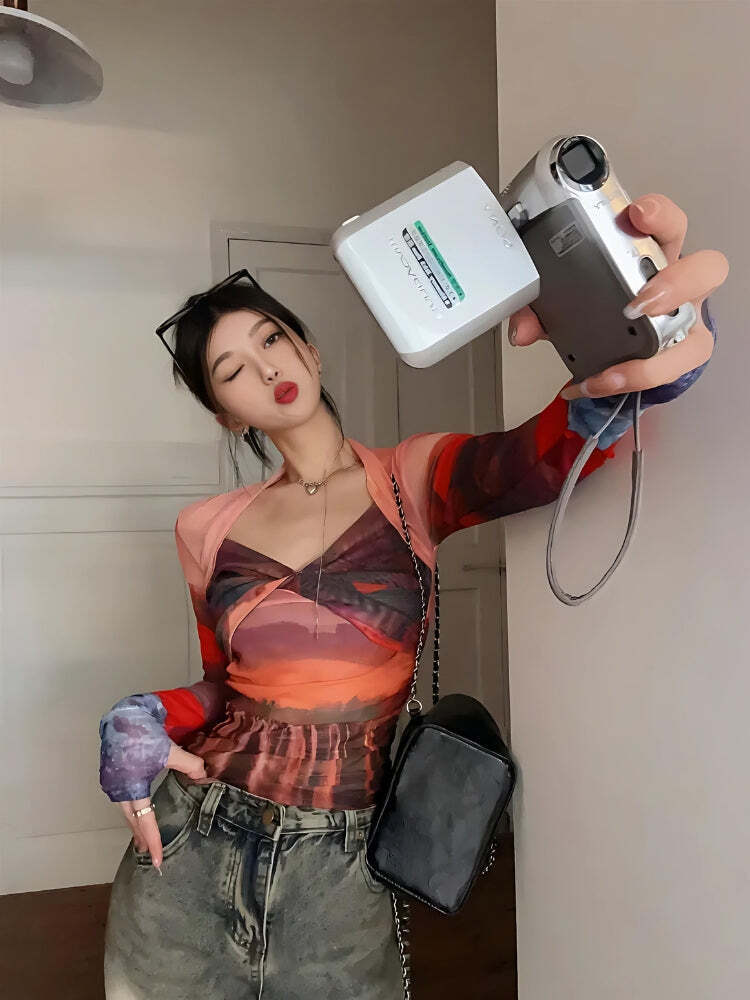 Y2K Sunset Mesh Top High-quality product featuring 90s fashion, 2000s fashion, cool sunglasses and more. Modern design that fits the latest trends. Premium materials ensure durability and comfort. Order now for special offers! Product designed with attention to every detail. Suitable for all occasions and personal styles.