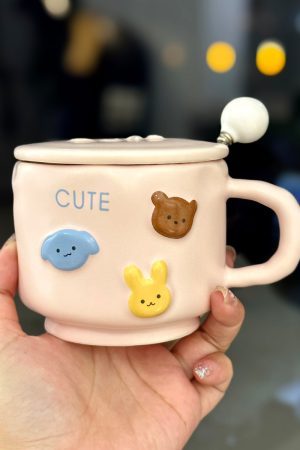 Charming Handcrafted Ceramic Animal Mug with Lid and Spoon – C – Party Animal Costume