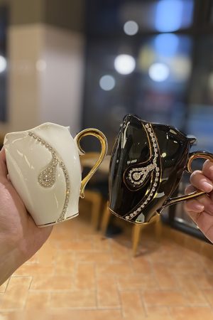 Luxury Hand-painted Gold Ceramic Water Cup Set for Dynamic Duo Costumes Couples Gift