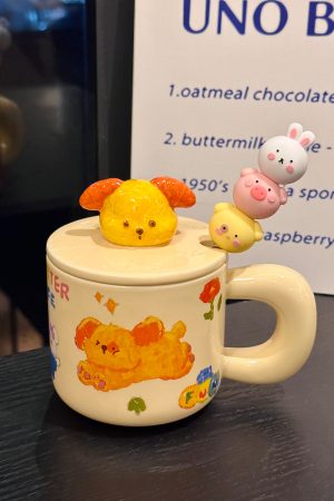 Adorable Ceramic Puppy Mug with Lid and Spoon – Cute Gift for – Party Animal Costume